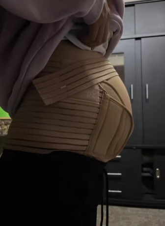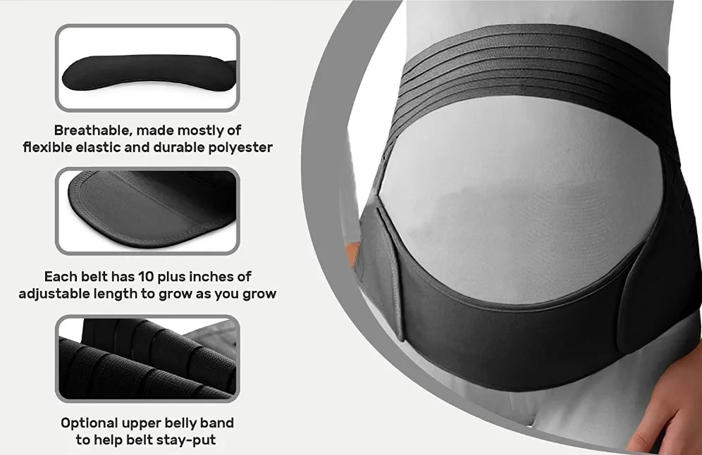 No — the band supports under the bump and around the lower abdomen; it’s designed for gentle external support, not to restrict the belly.